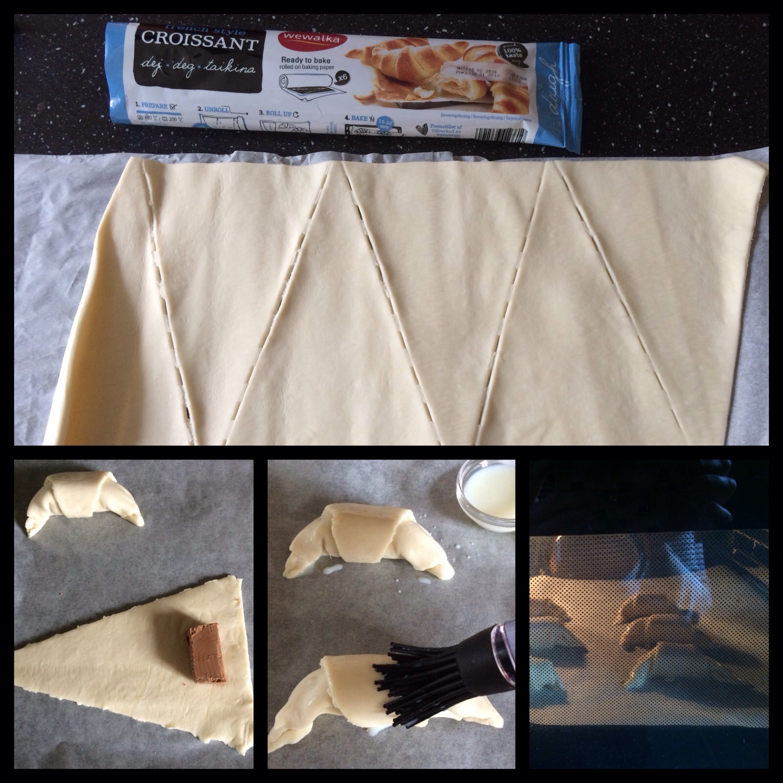 Jeg var så heldig at vi havde en groissant dej i køleskabet og en rest nougat, så der blev bagt nougatgroissant.